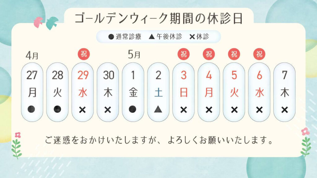 ゴールデンウイーク期間の休診日について